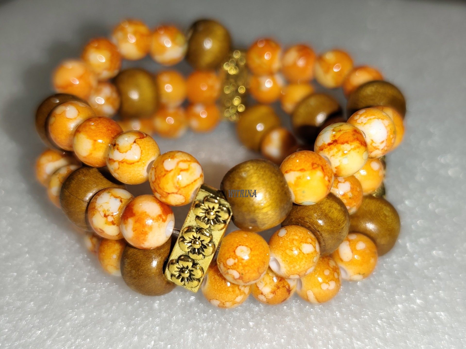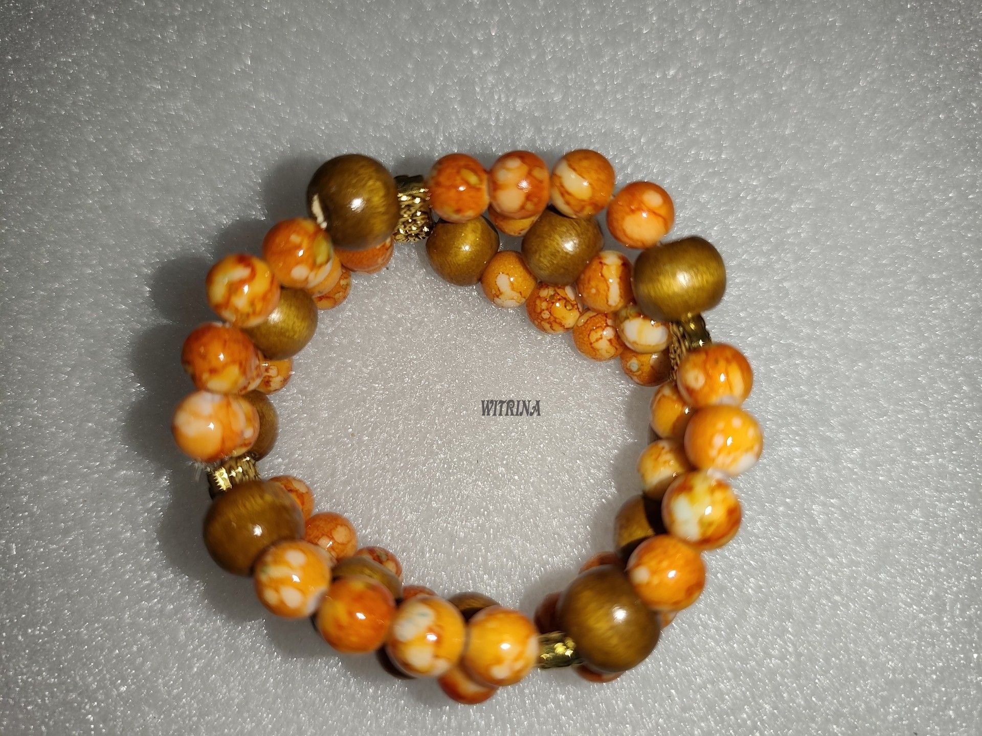 Délka náramku je od 15 cm, náramek se nezapíná, je pružný - díky pružence se snadno natáhne na ruku.