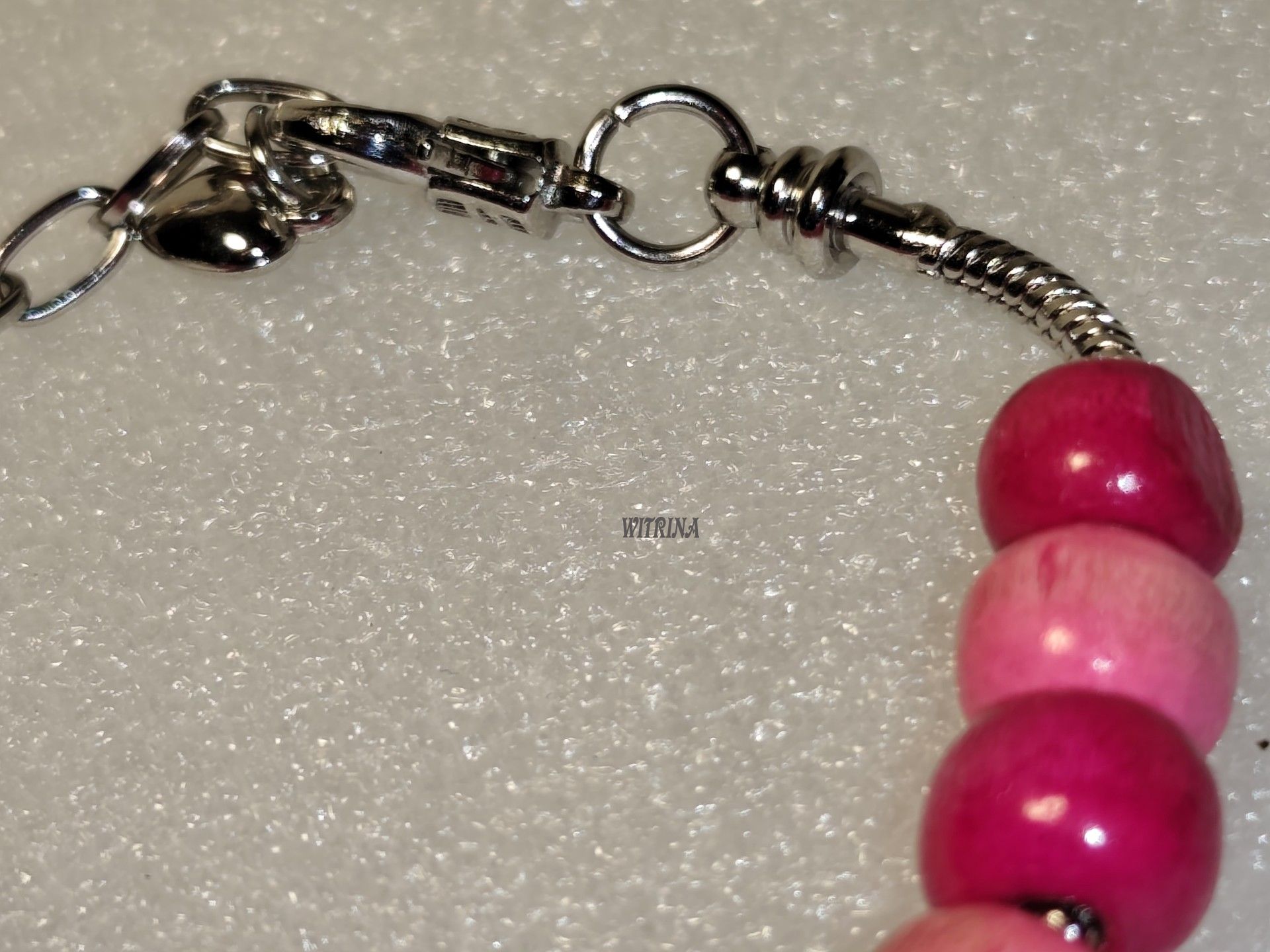 Kovový náramek se zapínáním, náramek není pružný. Tzv. hadí náramek a bižuterní komponenty.