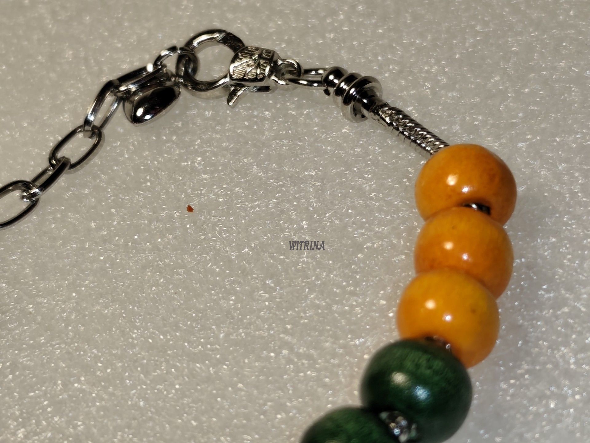 Kovový náramek se zapínáním, náramek není pružný. Tzv. hadí náramek a bižuterní komponenty.
