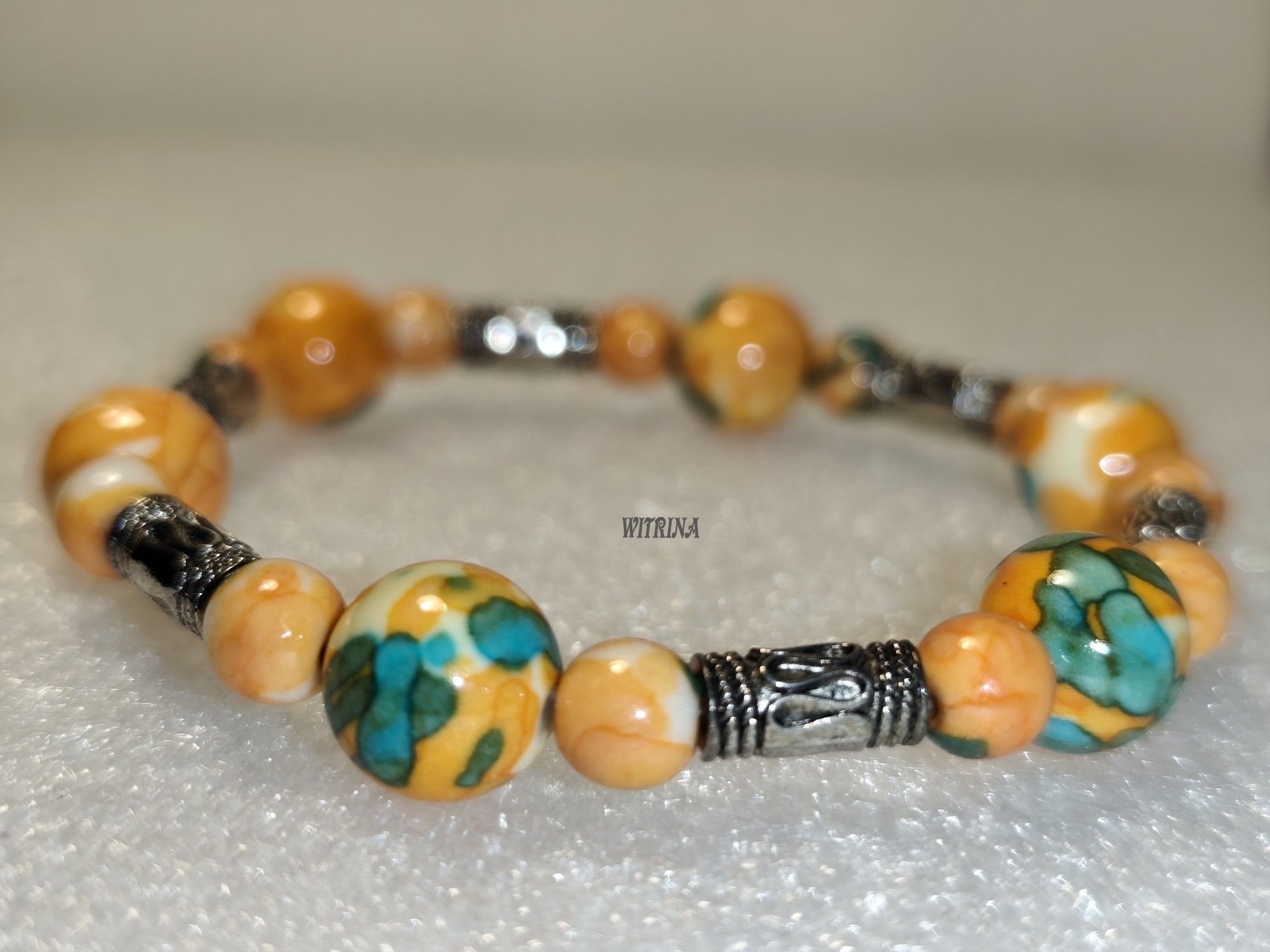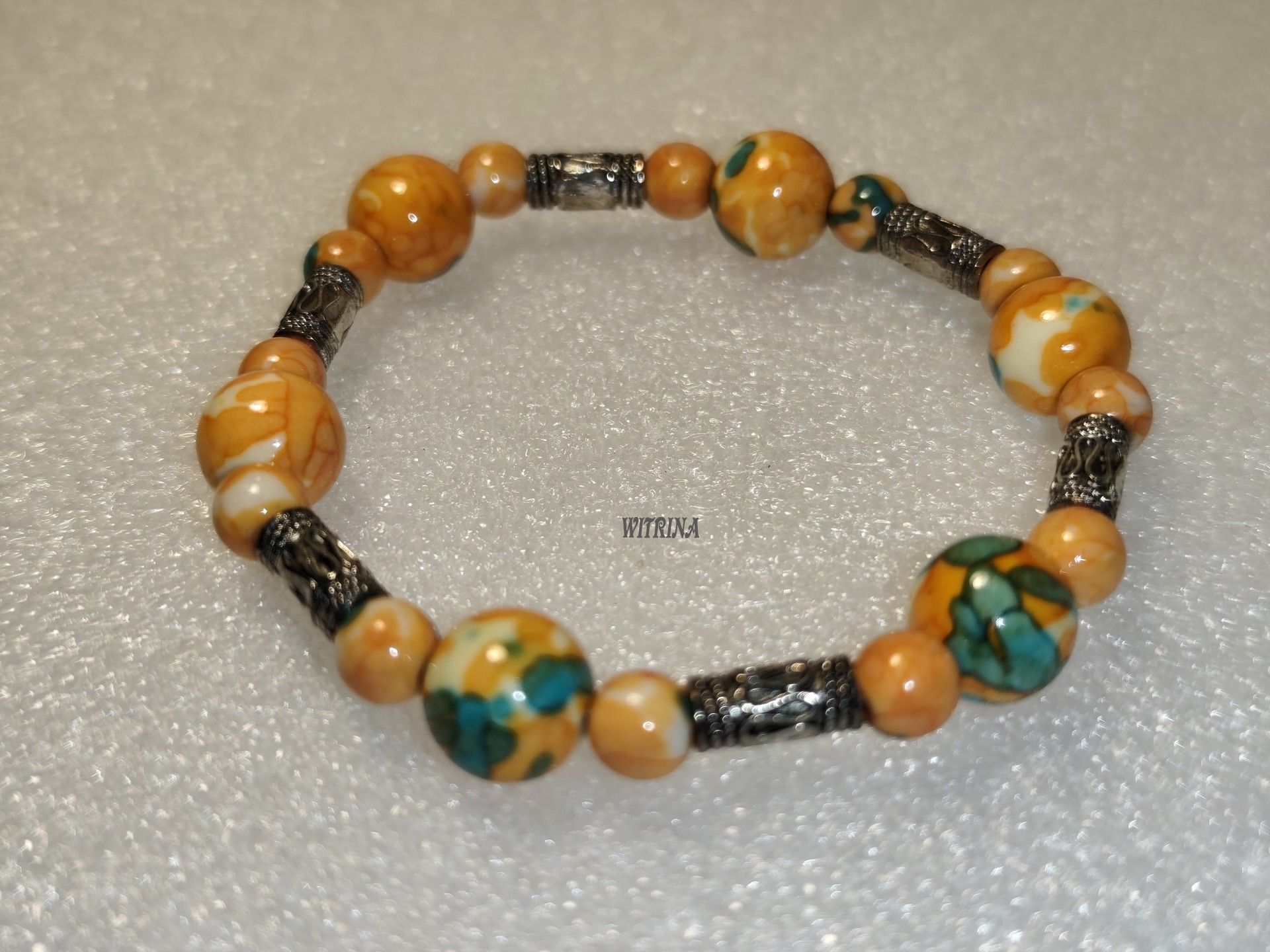 Délka náramku je od 17 cm, náramek se nezapíná, je pružný - díky pružence se snadno natáhne na ruku.