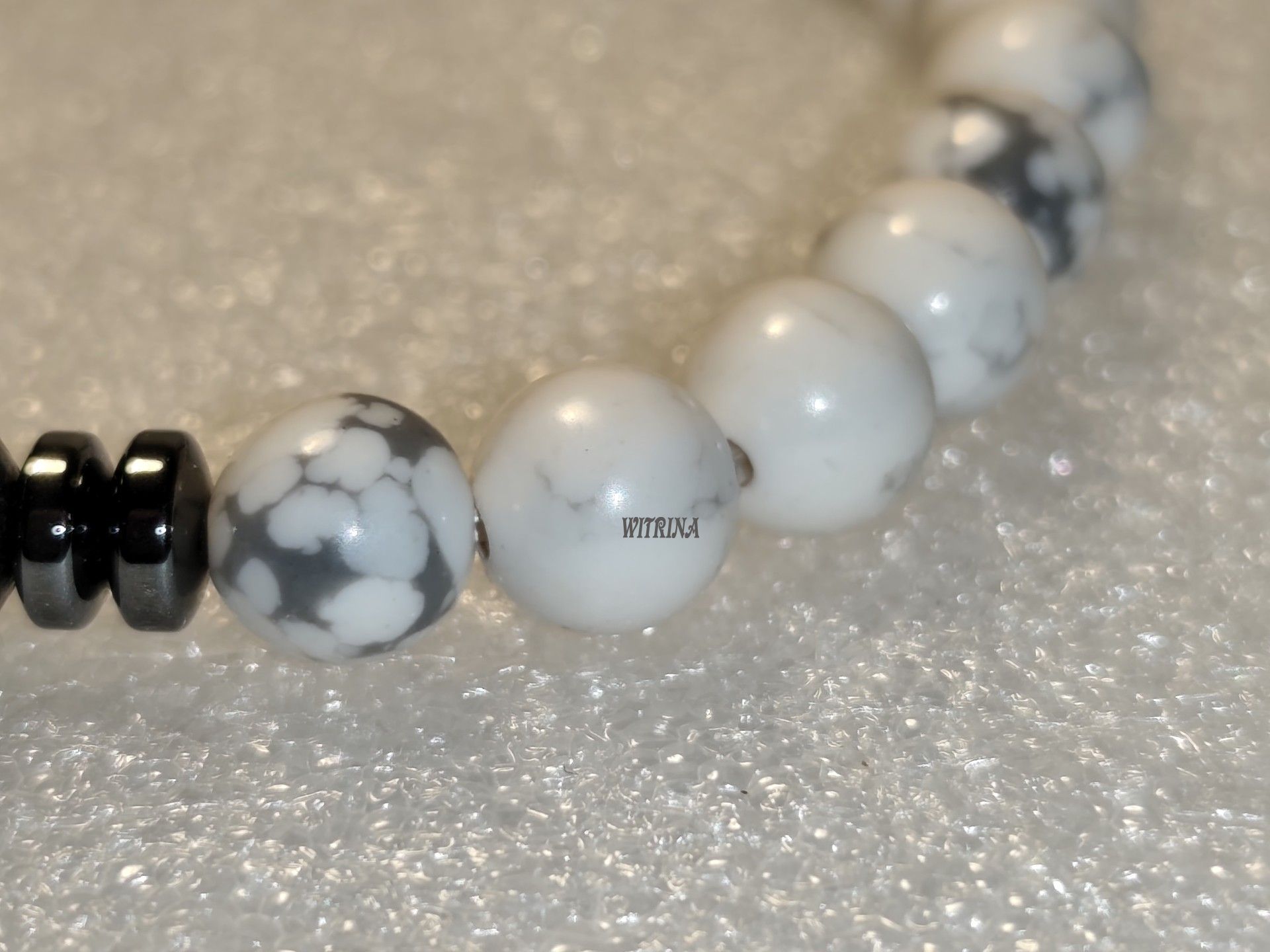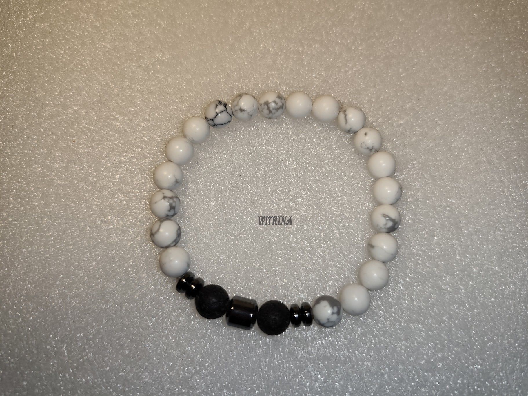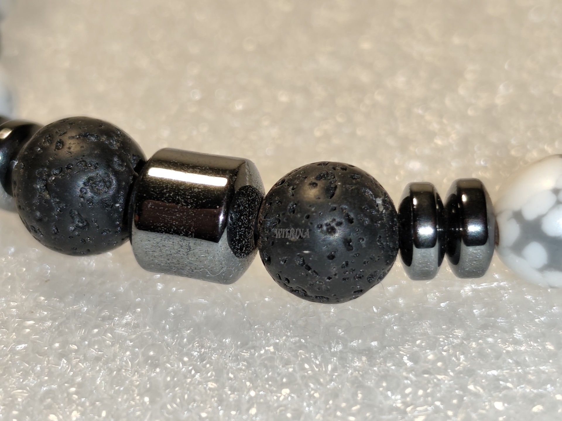 Hematit, howlite, láva, bižuterní komponenty, pruženka