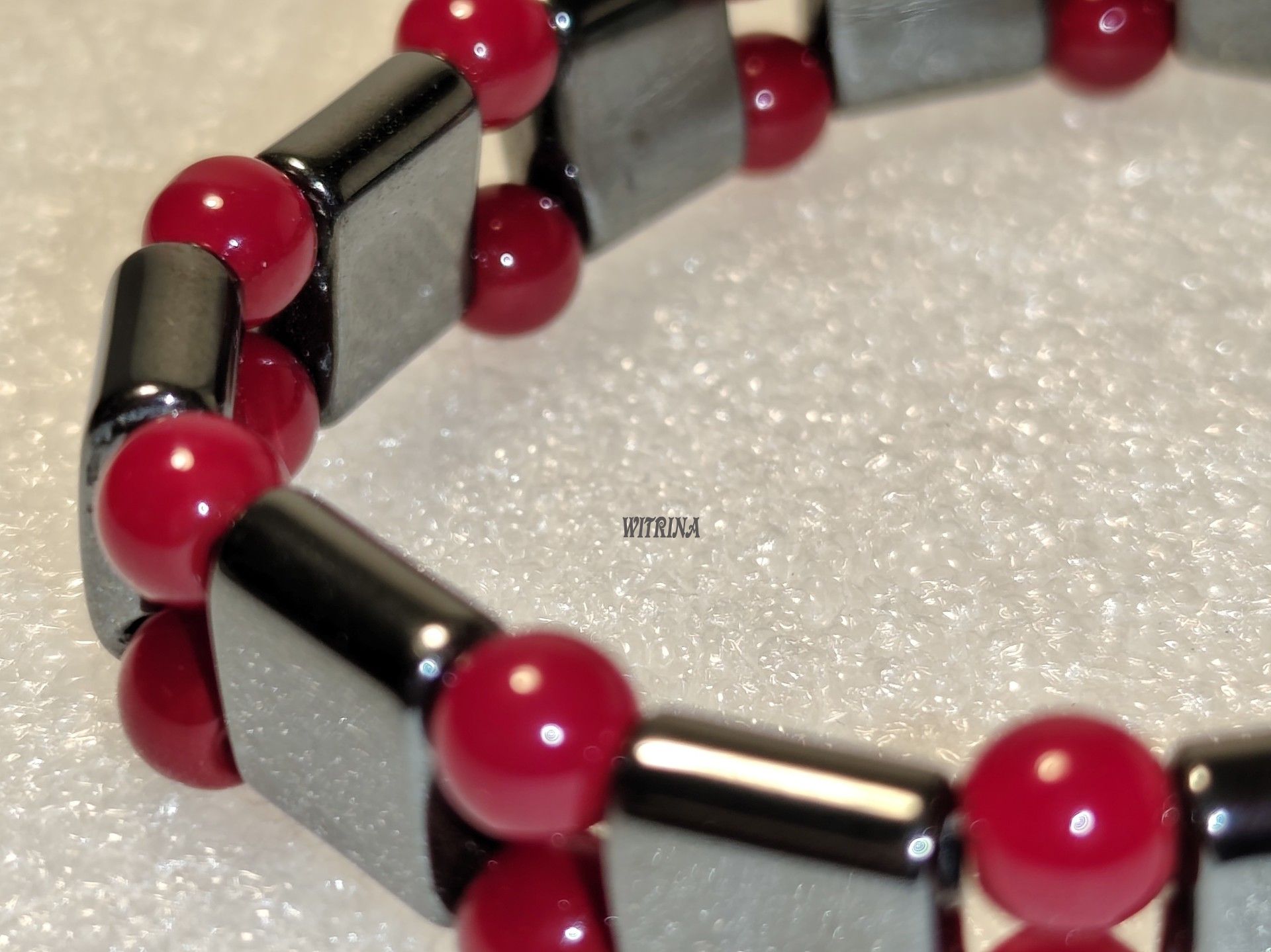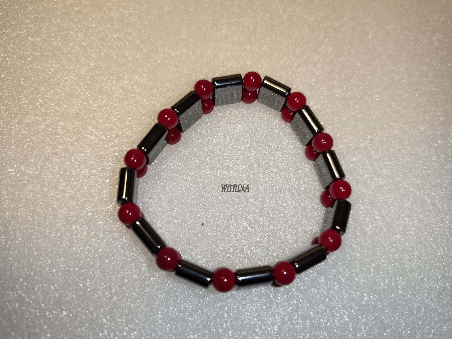 Hematit, červený korál, bižuterní komponenty, Pruženka