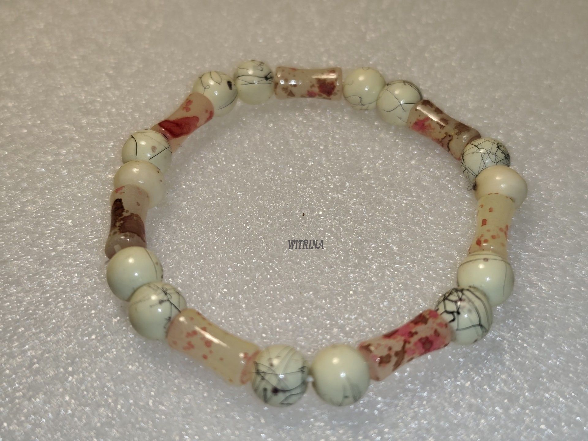 Náramek z kamenných a minerálních korálků. Original YARA, zabaleno v krabičce s kartičkou.