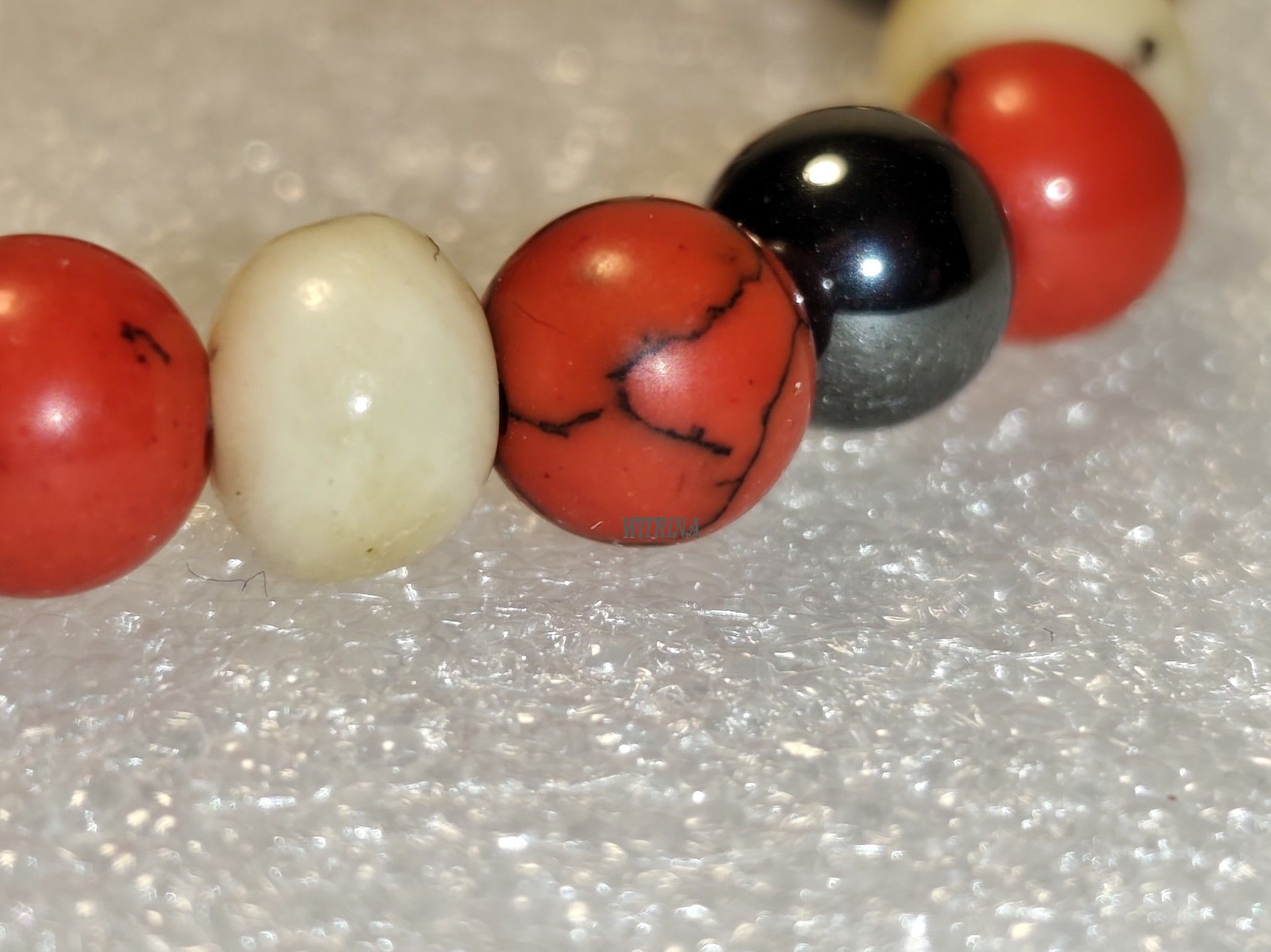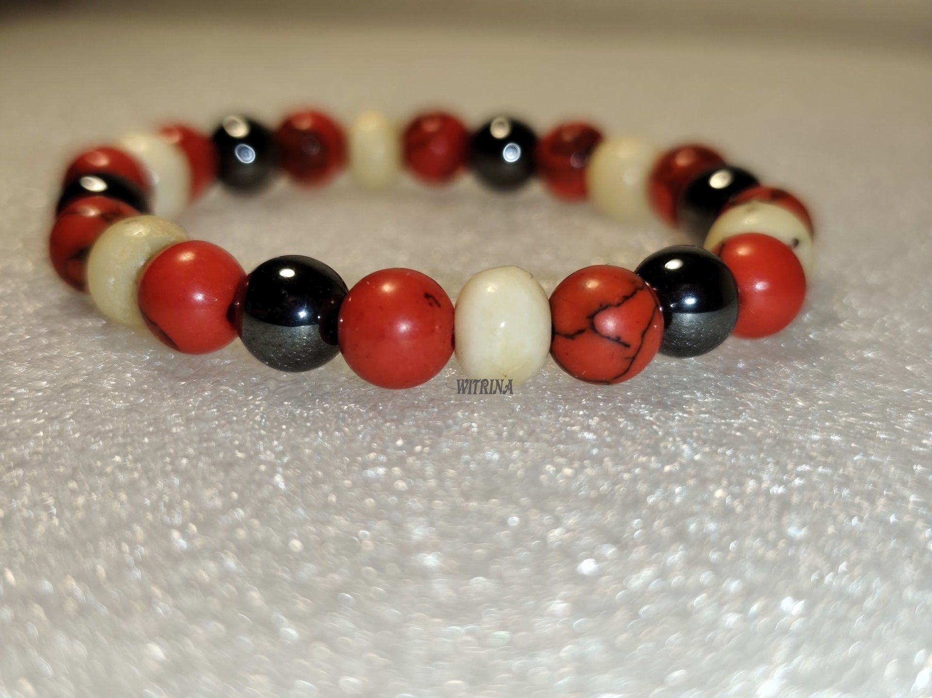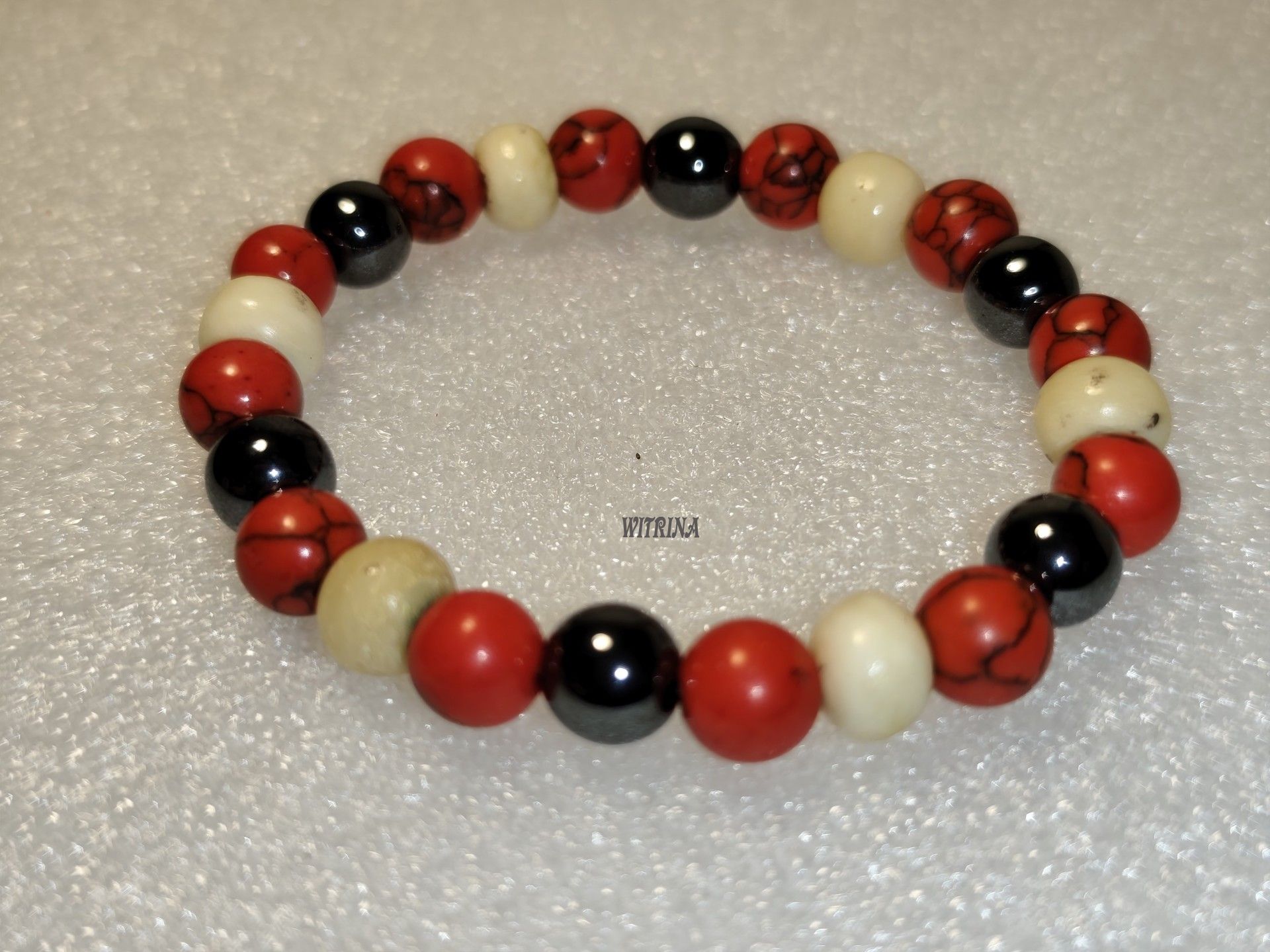 Náramek z kamenných a minerálních korálků. Original YARA, zabaleno v krabičce s kartičkou.