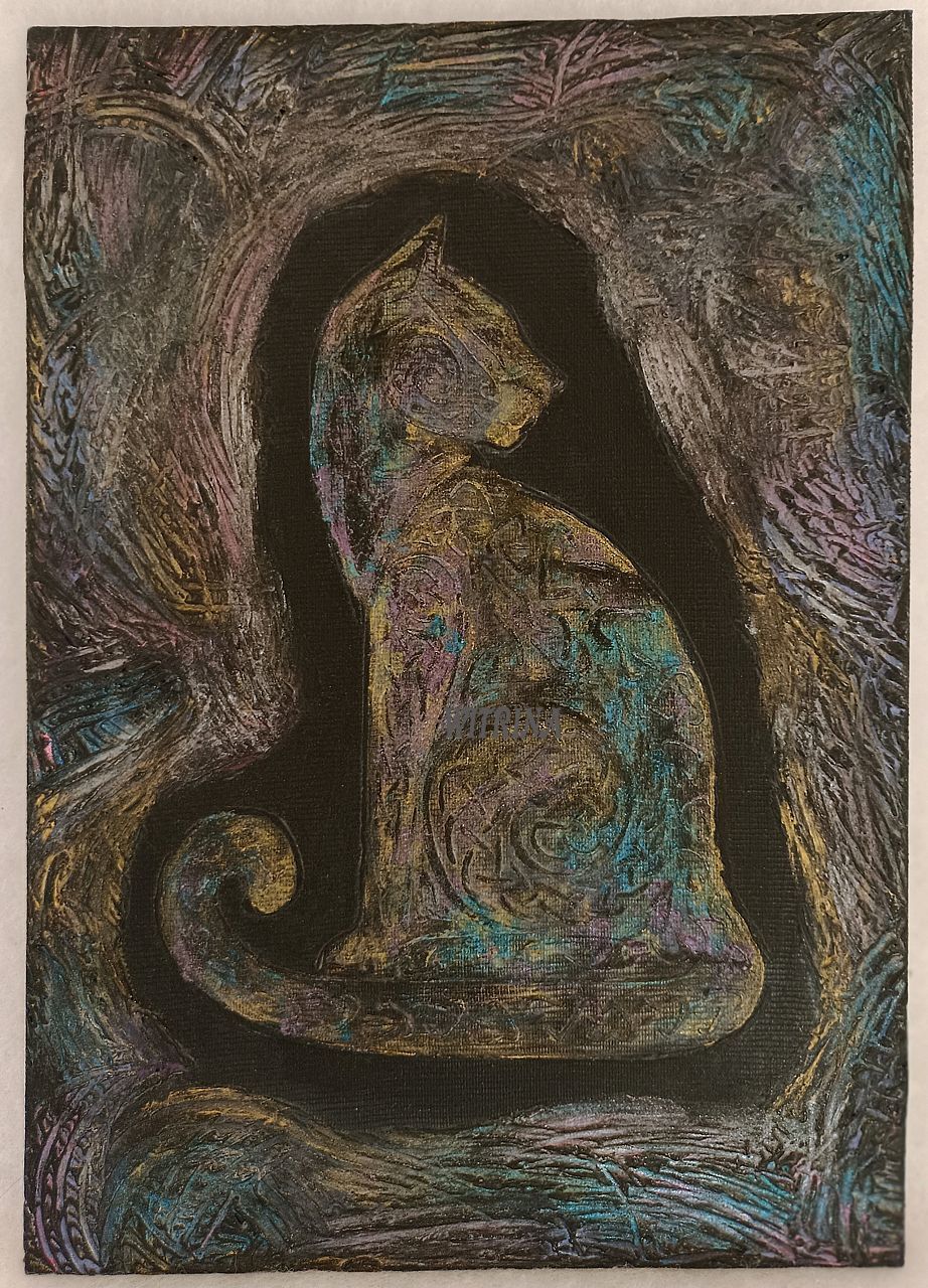 Technika: strukturovací pasta, šablona, akrylové barvy