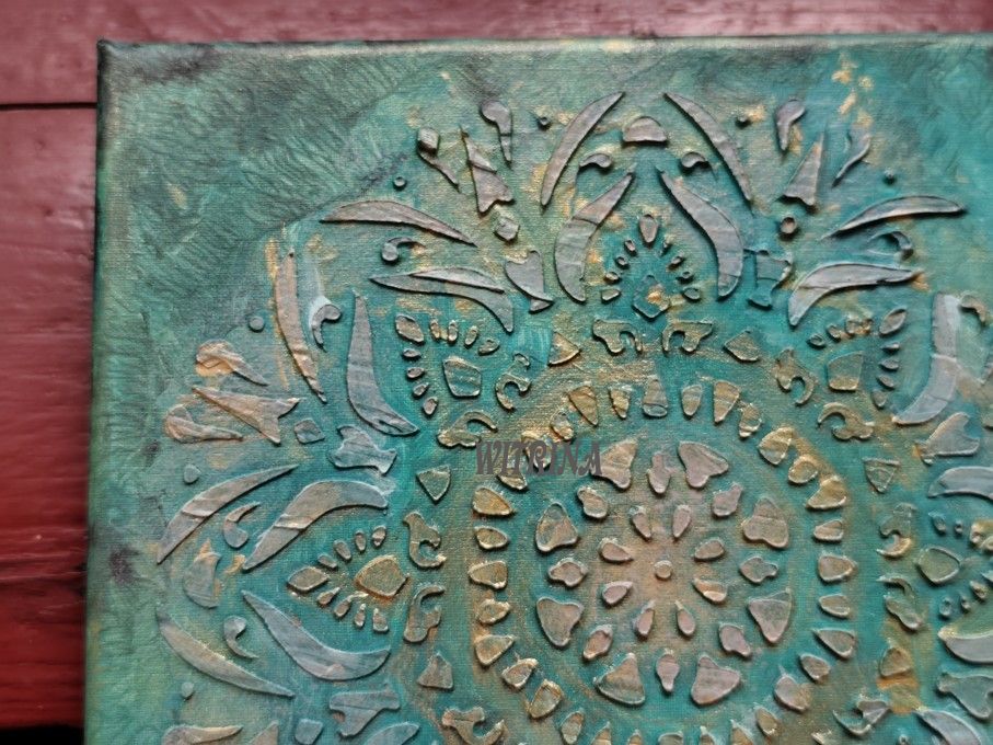 Šablony, strukturovací pasta, akrylové barvy