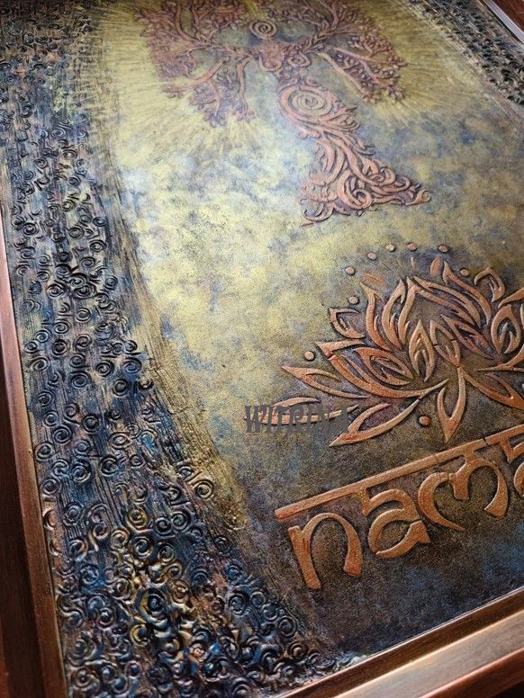 Šablony, strukturovací pasta, akrylové barvy, přelakováno
